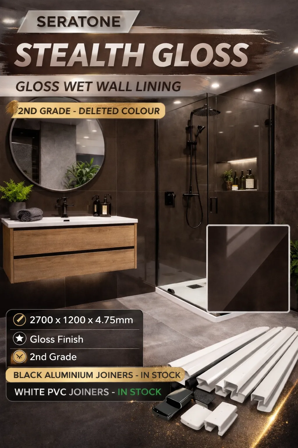 Seratone Wet Wall Lining – Stealth Gloss – 2700 x 1200 x 4.75mm